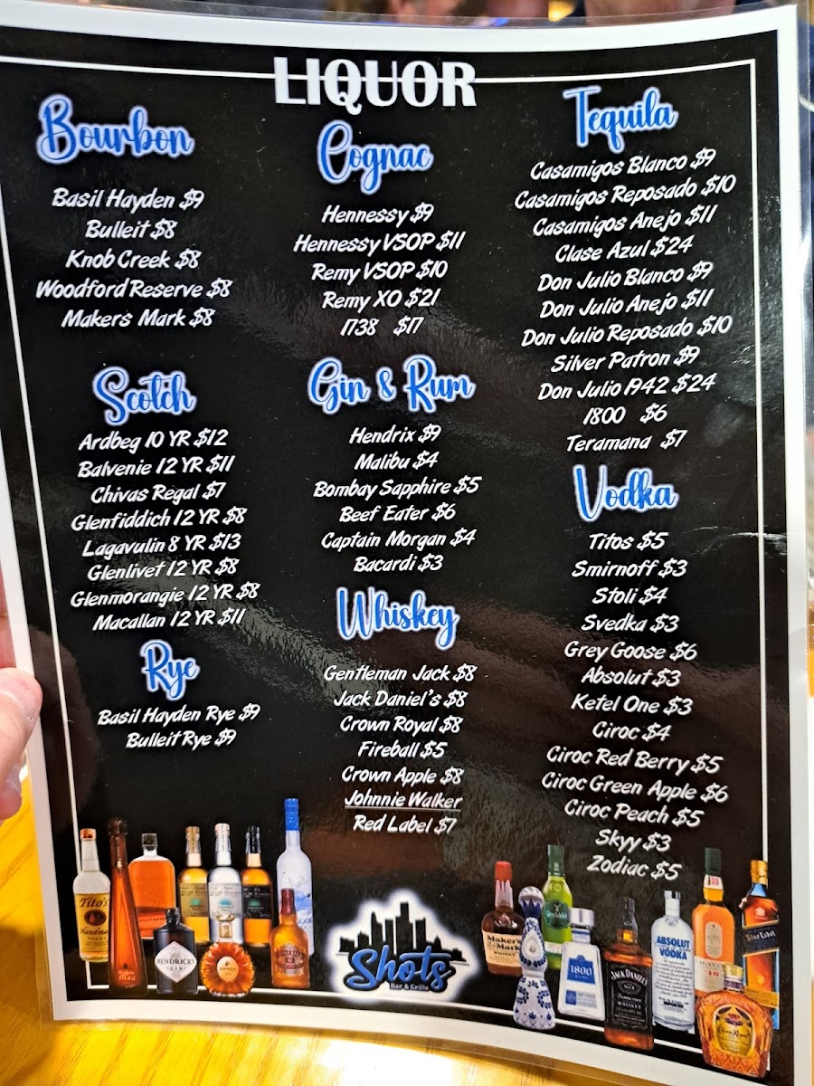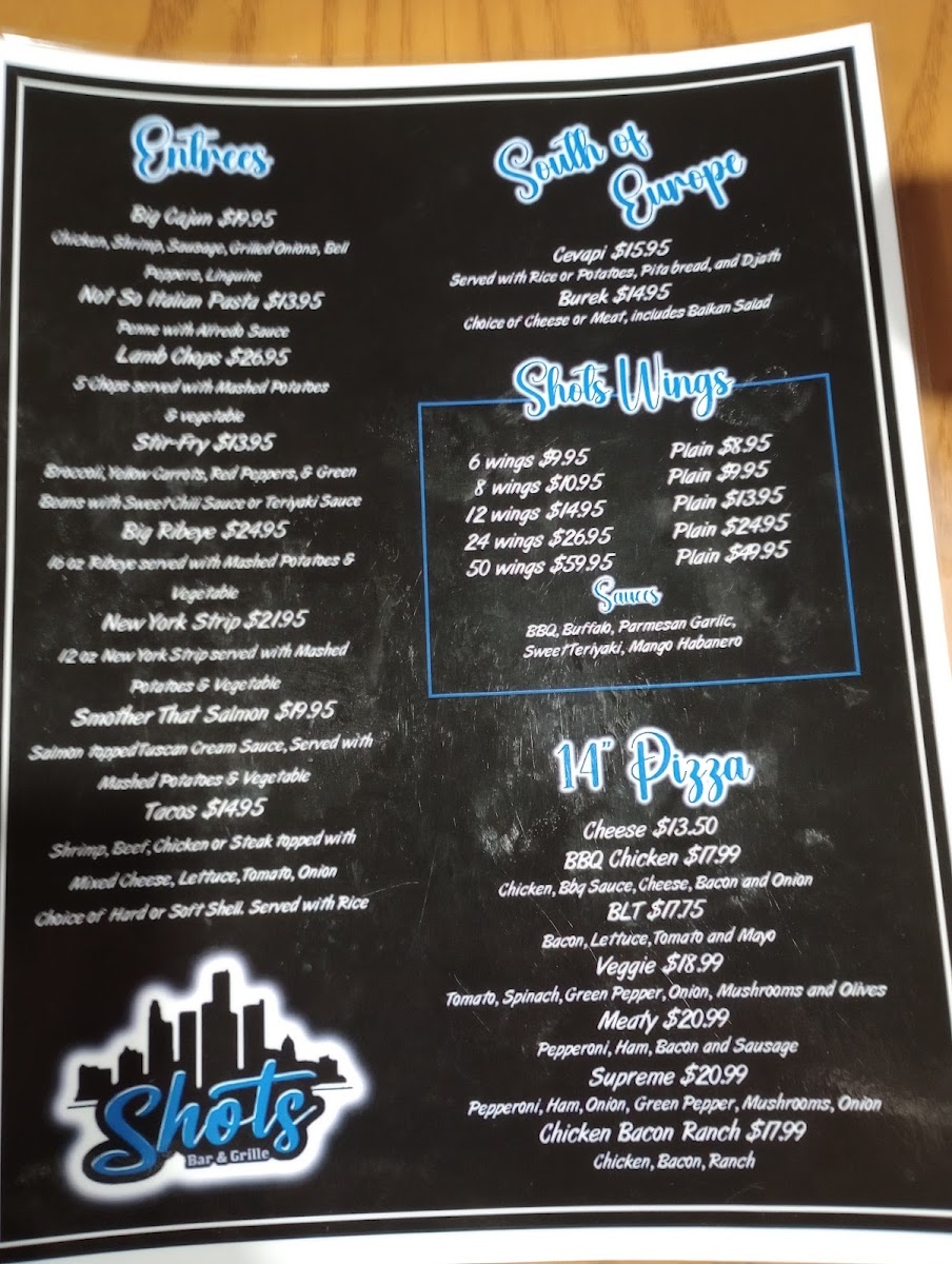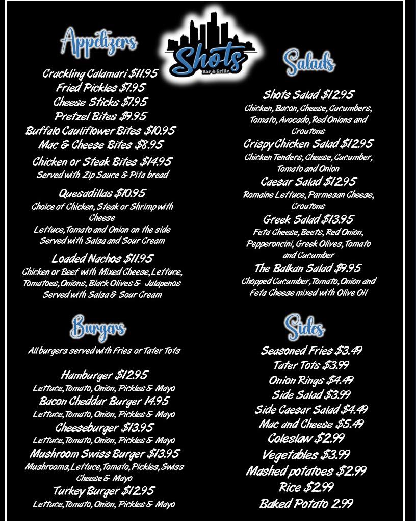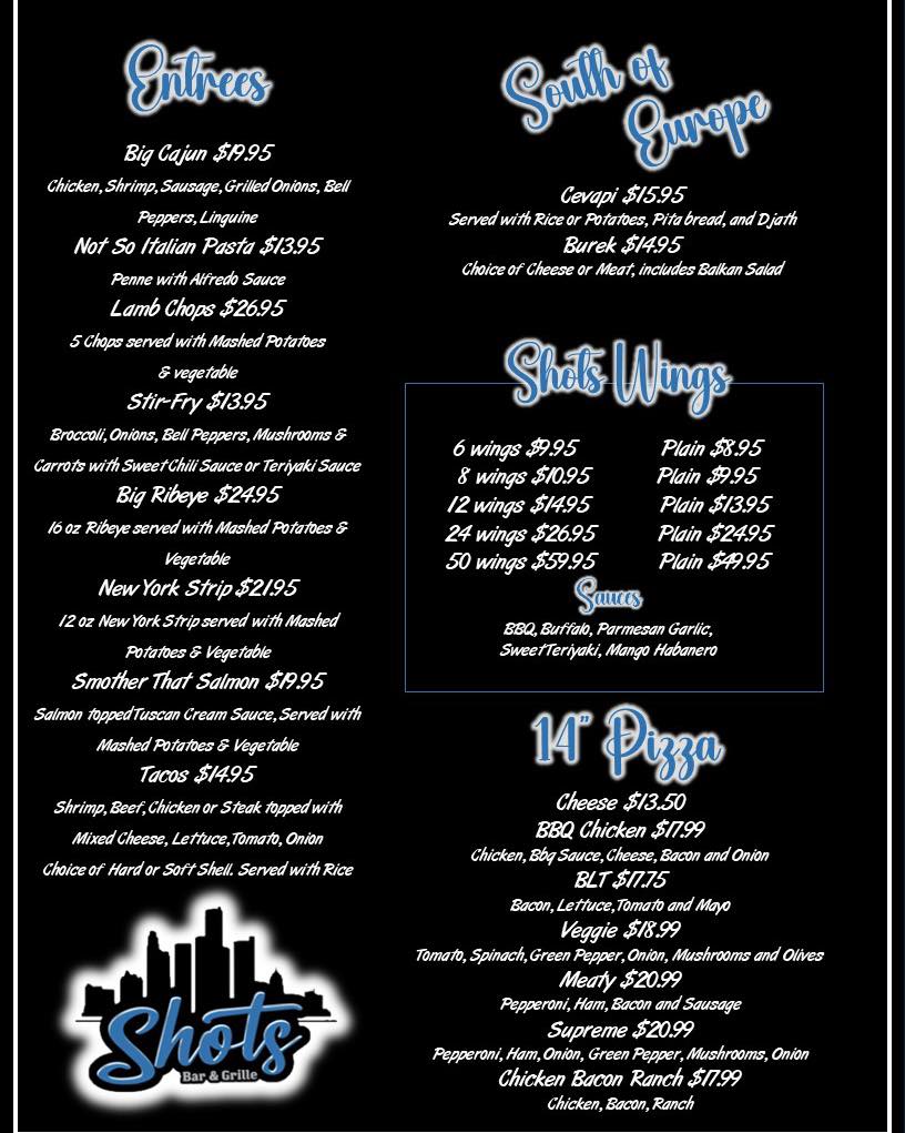 Shots Bar & Grille Menu