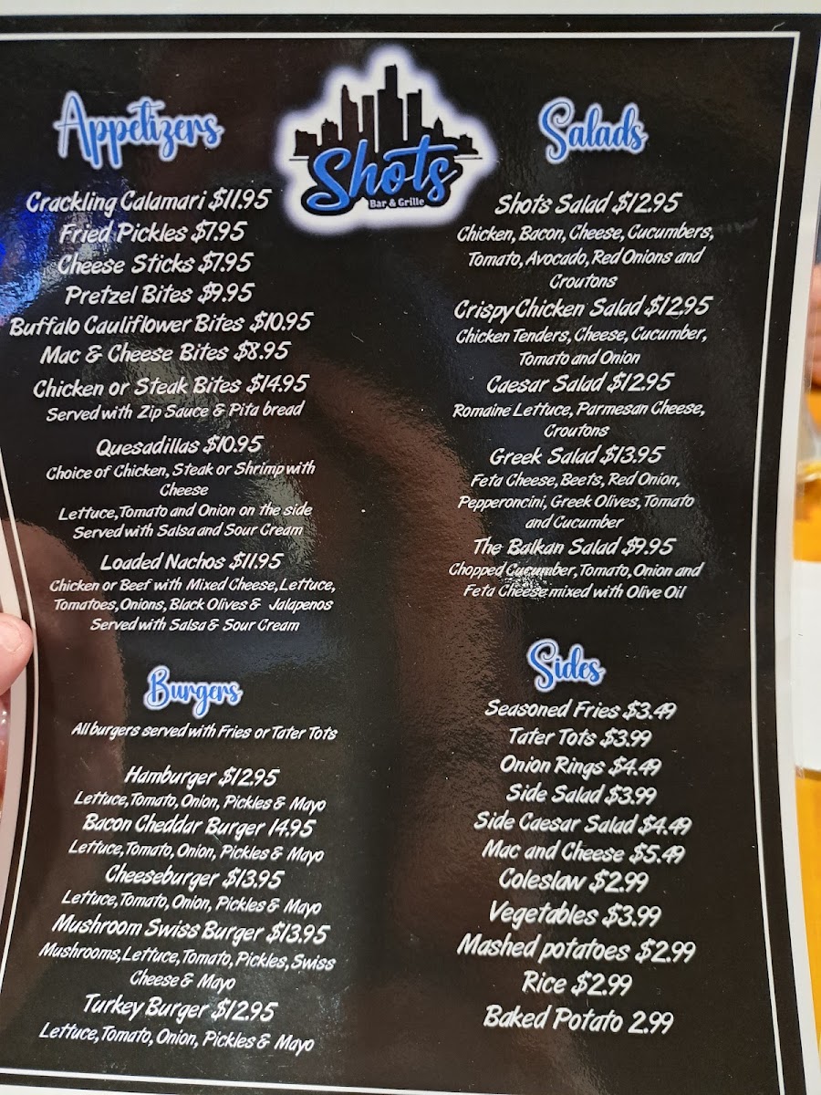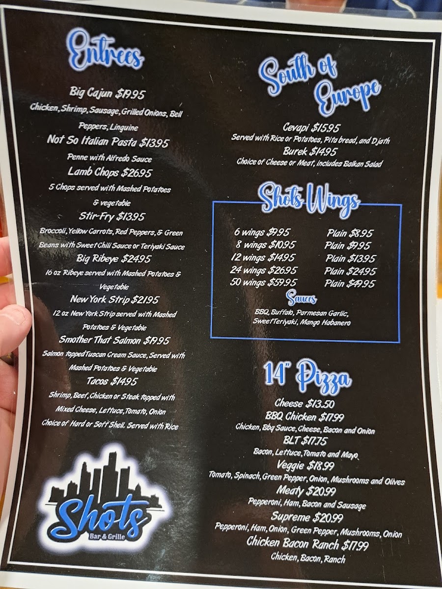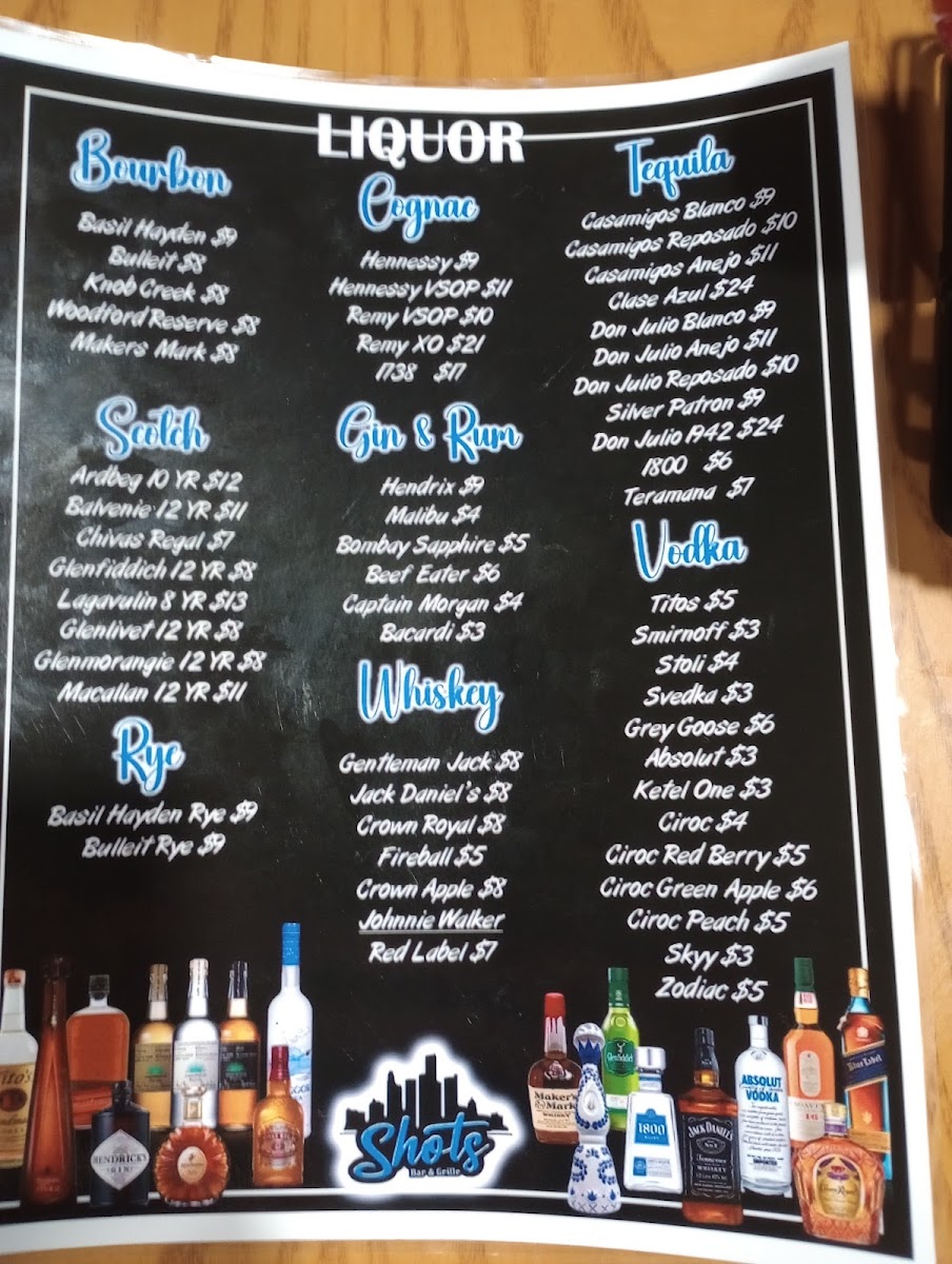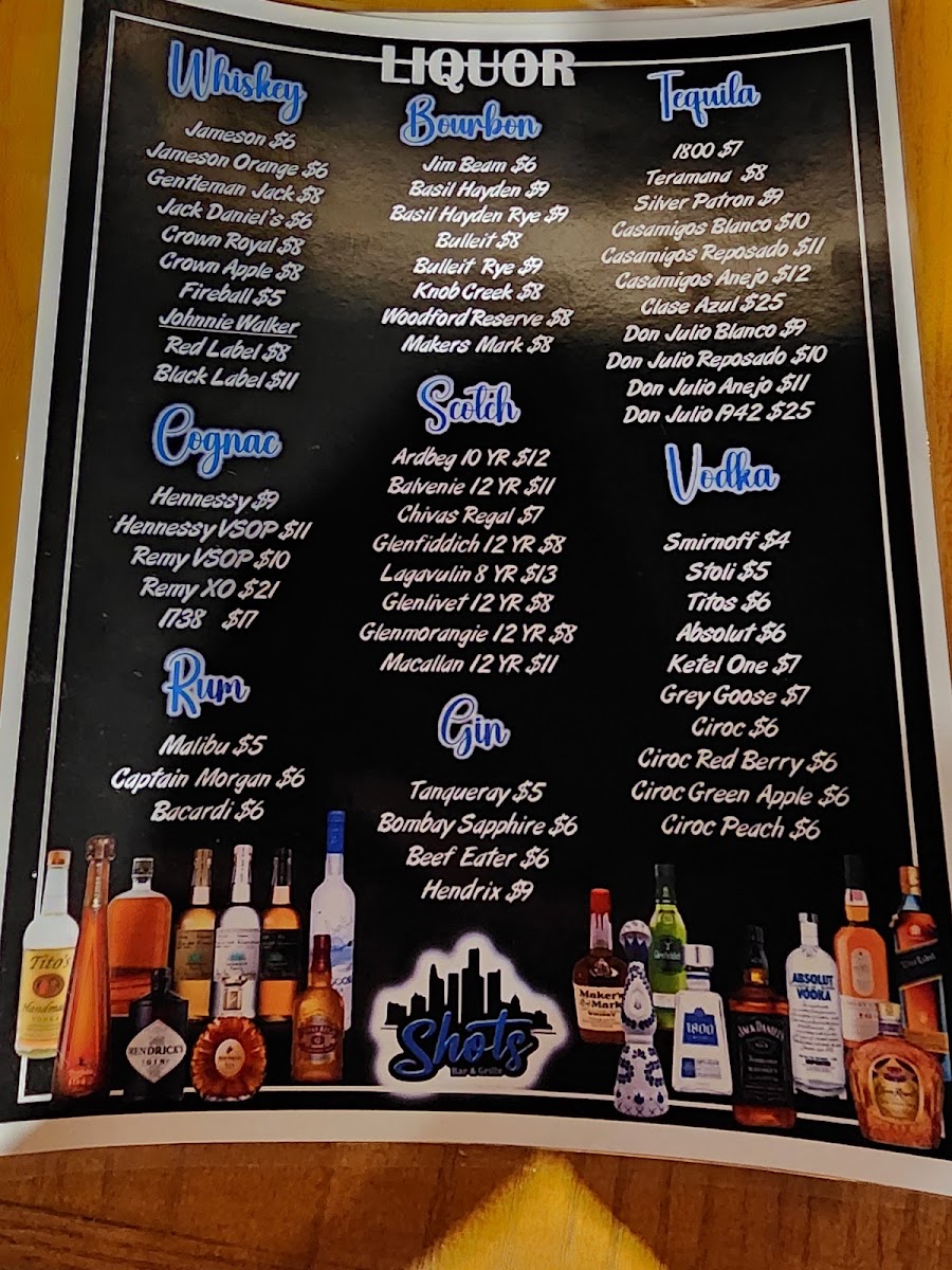 Shots Bar & Grille Menu